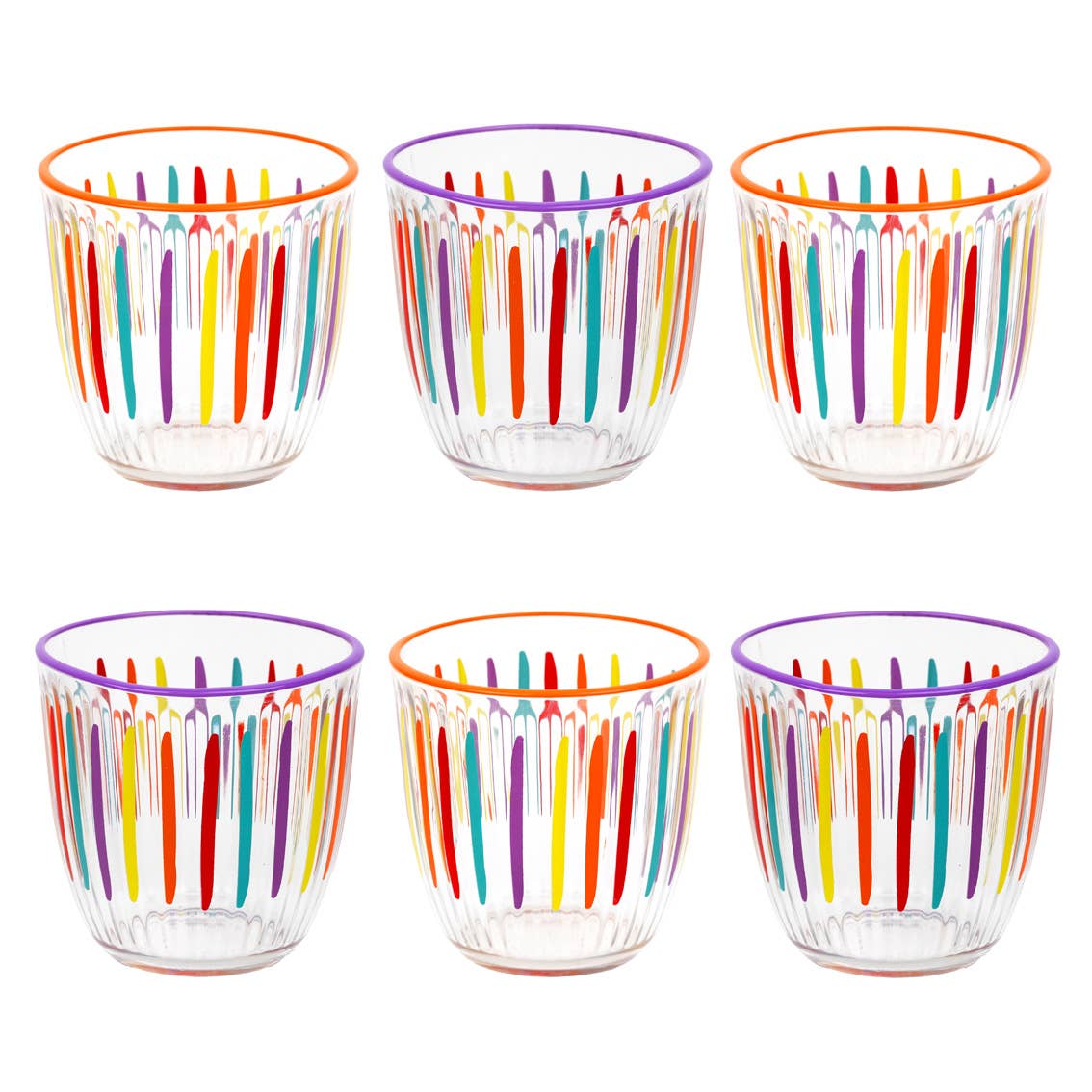 Inner pack of 6 - 3 lilac and 3 orange rimmed glasses