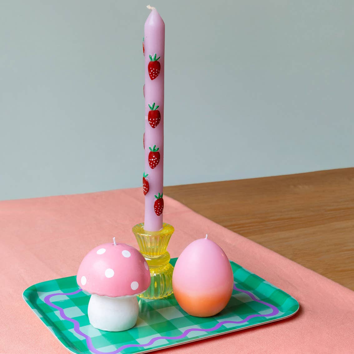 This popular pattern never fails to please. In each pack you'll find two pastel pink dinner candles with 3D hand painted strawberries. Ideal for summer parties and long, each dinner candle is made from non-scented wax, with a burn time of up to 8 hours. An easy way to refresh your home decor for summer.